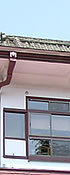 外壁の「石」が、赤い。現代では出すことの出来ない「赤だし」