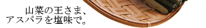 | わらび、竹の子などの入った山菜飯。 | しおで、さくらんぼ、月山筍の突き出し。 |